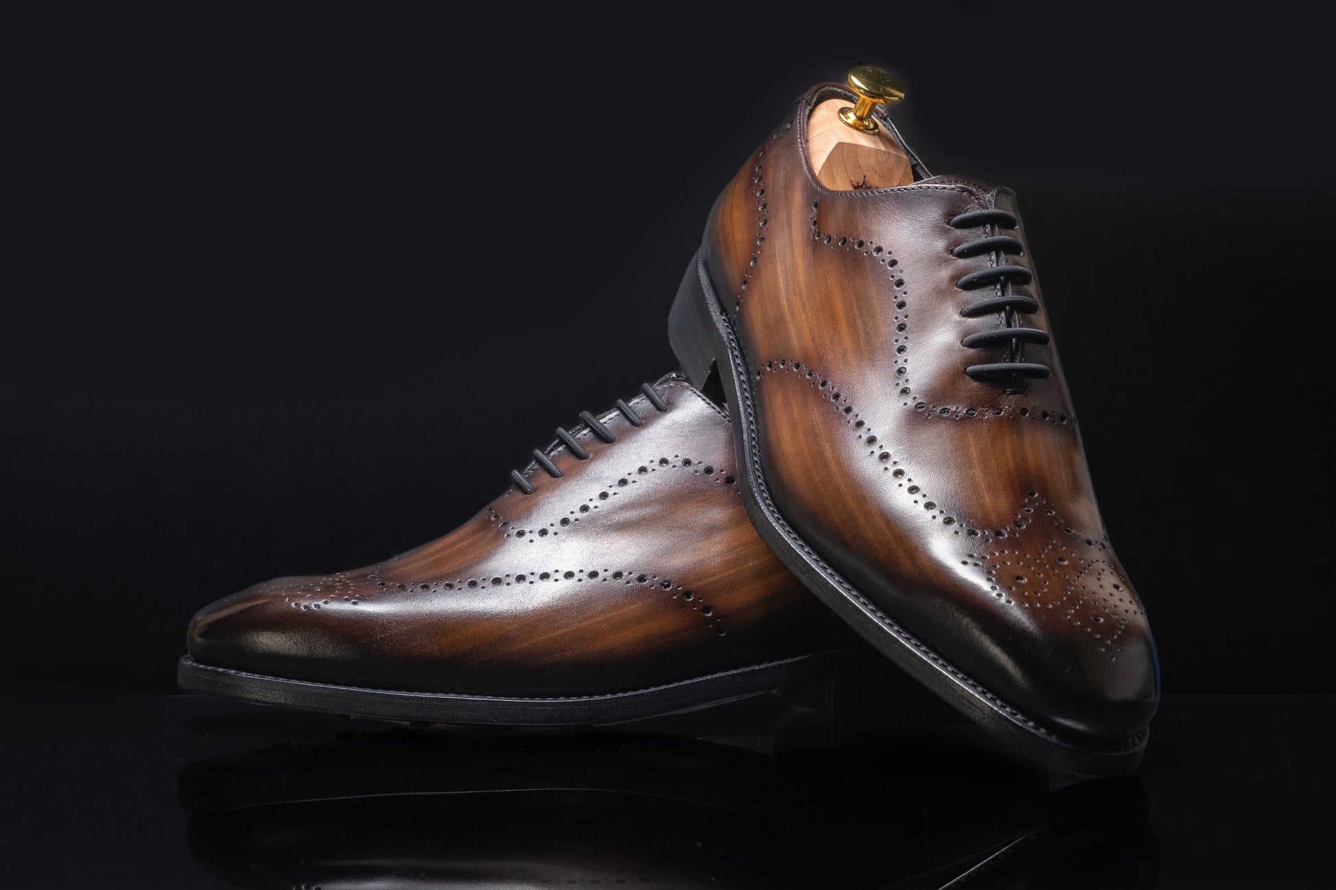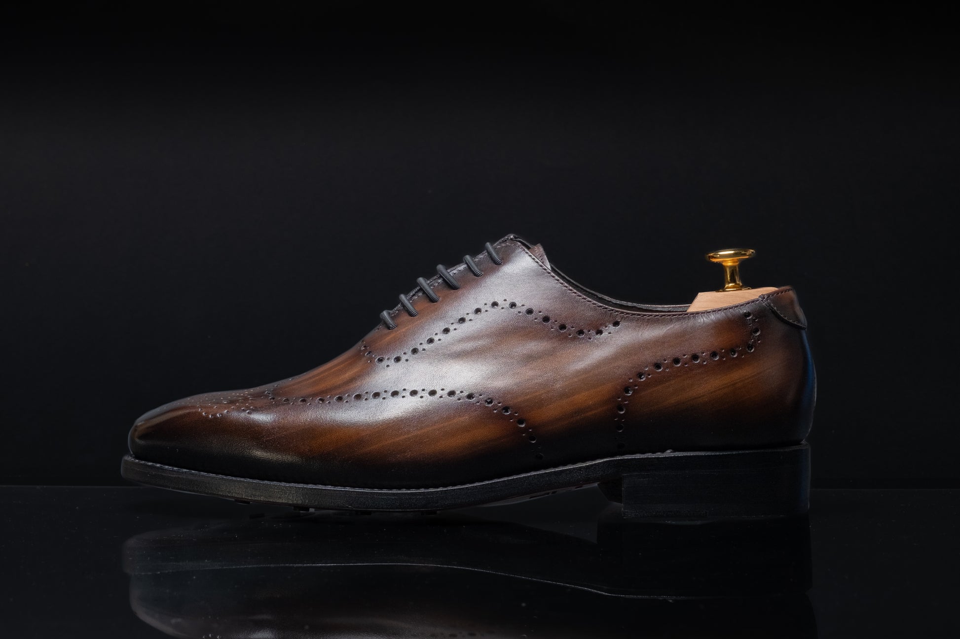 The Men’s Wholecut Oxford shoe epitomizes sleek sophistication, making it a top choice for formal occasions. Expertly crafted from a single piece of leather, this shoe combines elegance with unparalleled desirability. Its closed channel lacing and minimal stitching ensure a refined appearance, while the addition of a full brogue design enhances its charm with intricate detailing. Perfect for formal events, the Men’s Wholecut Oxford seamlessly merges timeless style with modern craftsmanship. The Alvaro style showcases hand-painted Oxford shoes adorned with various tones of brown colour.