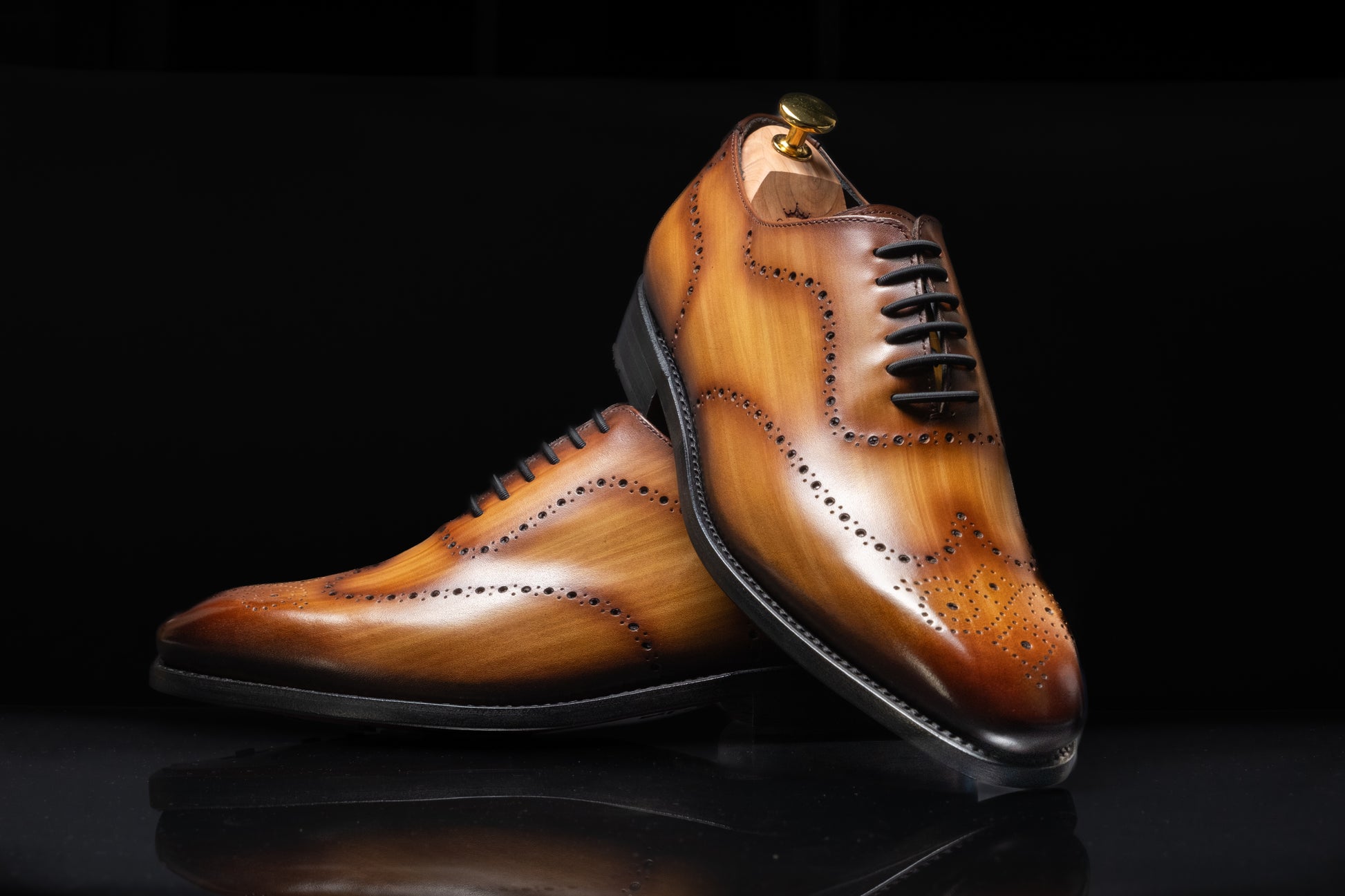 The Men’s Wholecut Oxford shoe epitomizes sleek sophistication, making it a top choice for formal occasions. Expertly crafted from a single piece of leather, this shoe combines elegance with unparalleled desirability. Its closed channel lacing and minimal stitching ensure a refined appearance, while the addition of a full brogue design enhances its charm with intricate detailing. Perfect for formal events, the Men’s Wholecut Oxford seamlessly merges timeless style with modern craftsmanship. The Alvaro style showcases hand-painted Oxford shoes adorned with various tones of light brown colour.