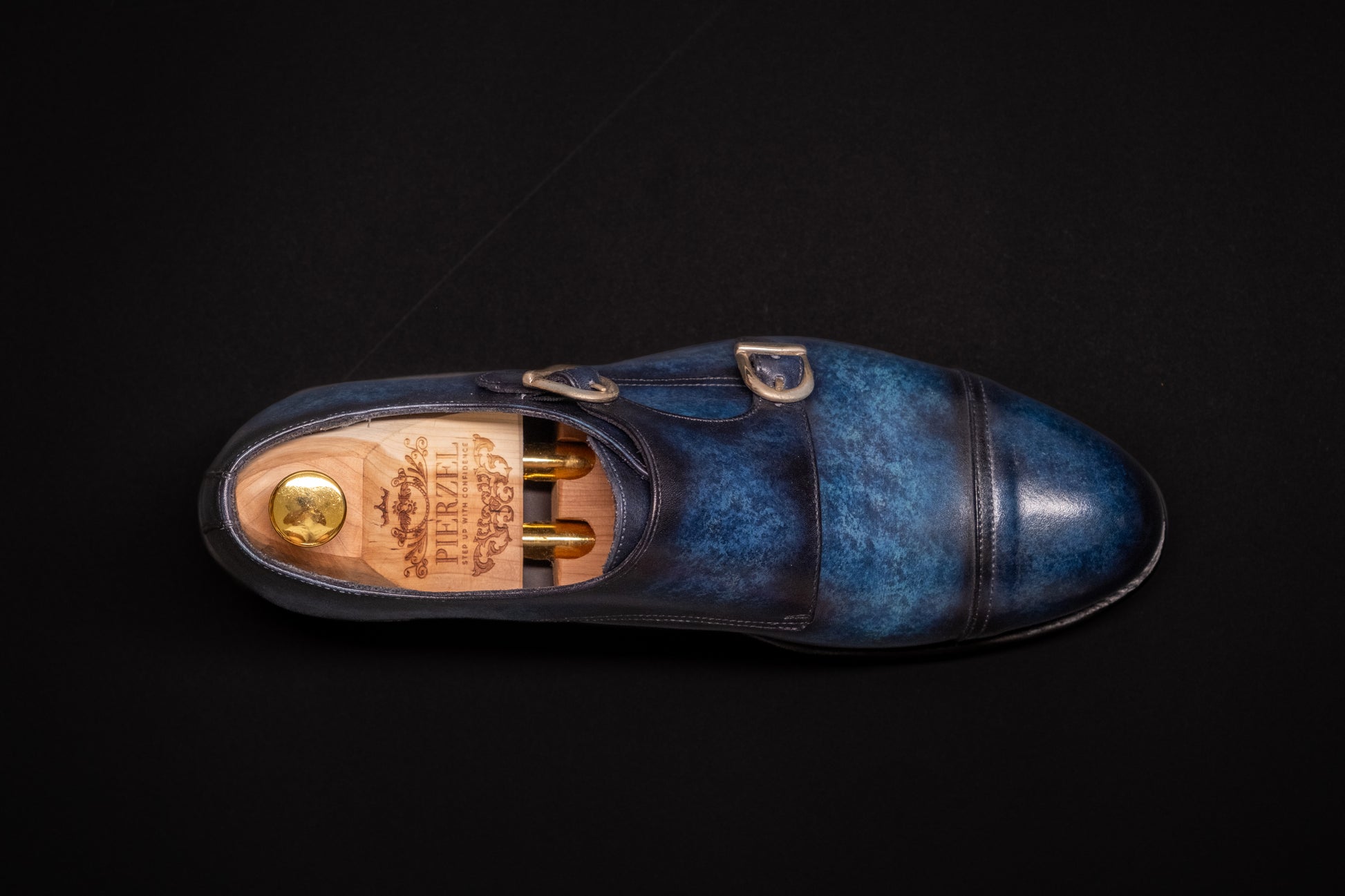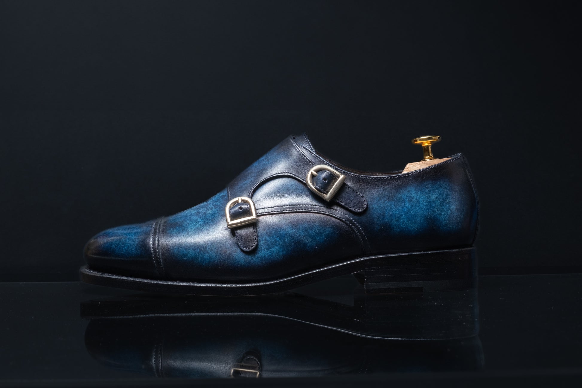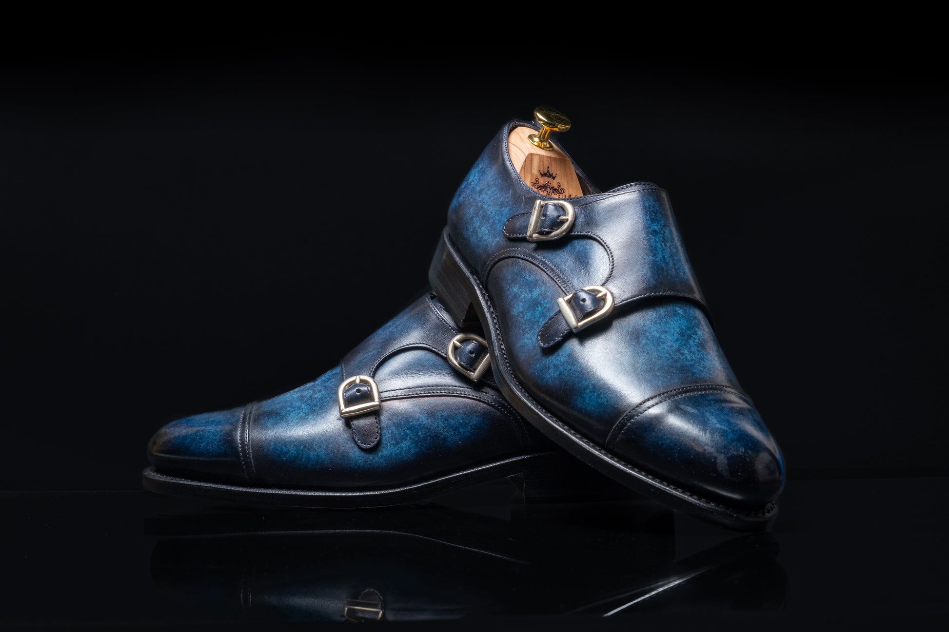 The Men’s Double Monk Dress Shoes embody refined elegance and timeless sophistication, making them a perfect choice for formal occasions. Crafted with precision, these shoes feature dual buckle straps that add a distinctive touch to their sleek design. Combining the structure of classic dress shoes with modern flair, the Men’s Double Monk Dress Shoes offer both style and versatility. With their clean lines, high-quality construction, and unique fastening, they are a standout option for any formal event, seamlessly elevating your ensemble. The Marquis Blue style features Double Monks that are meticulously hand painted using our unique marble patina technique, showcasing various tones of blue colour.